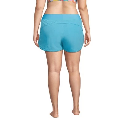 When it comes to summertime fun there’s no time for costume changes. That’s why you’ll love these Lands’ End Womens 3 Inch Quick Dry Elastic Waist Modest Board Shorts Swim Cover-up Shorts with Panty. Made from UPF 50 fabric you can wear them for added sun protection on long days at the beach pool or lake. They’re also made from a quick dry water-repellent fabric that’s great for swimming kayaking surfing water skiing paddle boards and so much more. High waisted wide elastic waist band provides modest coverage in front and back eliminating self-conscious tugs. And the handy side and waistband pockets hold whatever essentials you need for a walk on the boardwalk after you’re done splashing in the waves. It’s the best swimsuit coverup for a variety of activities. Regular and plus size options available. Machine wash with easy care instructions. Just rinse in cold water to help prevent breakdown from chlorine sweat and sunscreen. Mix and match these bathing suit bottoms with your favorite tummy control swim top or wear them instead of shorts pants or capris when you know you’re going to sweat!