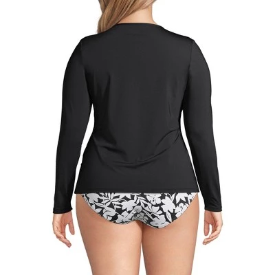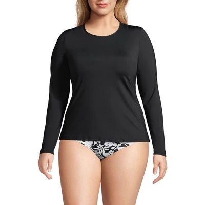 At Landsā End we believe every body is a swimsuit body and everybody should feel confident in their swimwear. Our Womenā Crew Neck Long Sleeve Rash Guard Modest Swim Tee is no exception. Lightweight and soft this tee is made with LYCRA Xtra Life spandex. It is specially designed to keep its shape in and out of the water and hold up all summer long. It offers UPF sun protection wherever it has you covered. We promise youāre going to love this fun and flattering crewneck long sleeve modest swim tee.