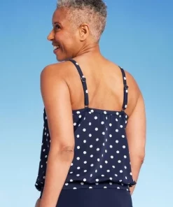 This tankini top is all about comfort- with adjustable straps and sewn in cups, it wears like your favorite tank top. The flowy silhouette drapes beautifully and cleverly camouflages your middle, yet still stays in place thanks to the bottom band. It is made with built-inĀ UPF 50 sun protection.