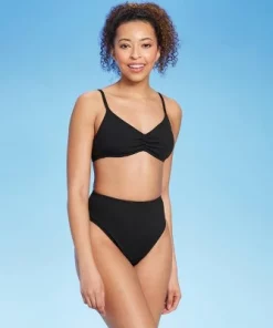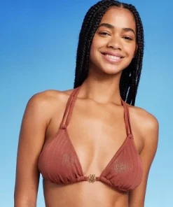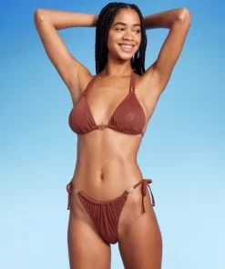 Women’s Side-Tie Adjustable Extra High Leg Lurex Plisse Textured Bikini Bottom – Wild Fable™ Brown
