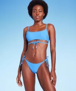 Women’s Beaded Side-Tie High Leg Cheeky Bikini Bottom – Wild Fableâ„¢ Bright Blue