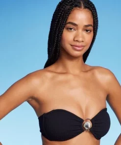 Women’s Pucker Textured Center Front Shell Detail Bandeau Bikini Top – Wild Fableâ„¢ Mint Green