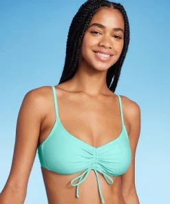 Women's Ruched Drawstring Front Bralette Bikini Top – Wild Fable™ Mint Green