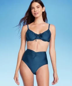 Women’s High Waist Shirred Front Bikini Bottom – Shade & Shoreâ„¢ Teal Blue Shine