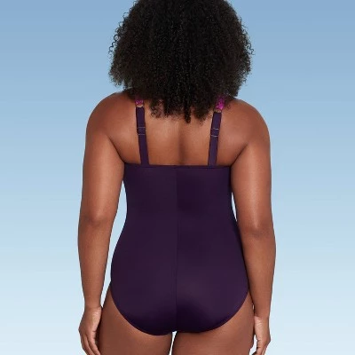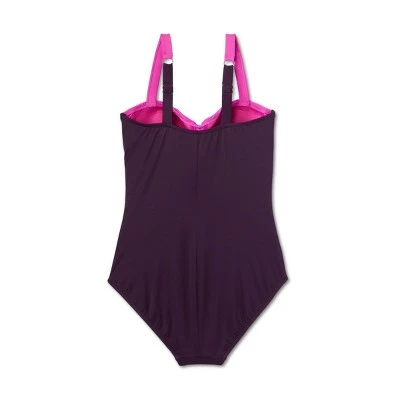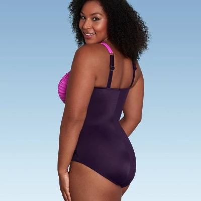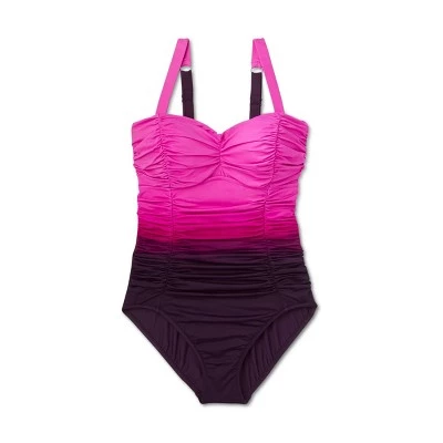 Soak up the sun in style with this UPF 50 Sweetheart-Neck Seamed One-Piece Swimsuit from Shape + Style⢠by Aqua Green®. The sleeveless swimsuit is made of soft fabric with princess seams and shirred detailing down the front, a sweetheart neckline and molded cups for a flattering fit that will hug your body in all the right places. Designed in a bright pink front ending in blended pinks, a wine-colored bottom and a solid wine color across the back, the slimming swimsuit boasts a UPF rating of 50+ to let you enjoy the sun while staying comfortably shielded from harmful rays. Adjustable shoulder straps complete the design with a customizable fit.