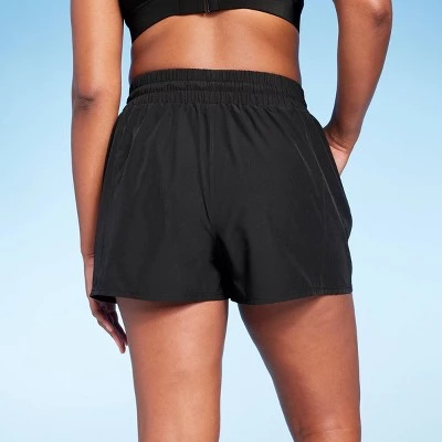 - High-rise board shorts in a solid hue