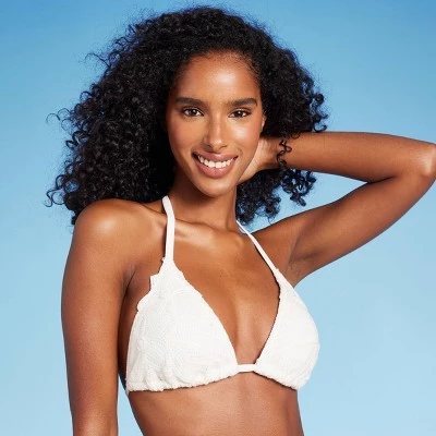 Show off your love of retro style at the beach or pool by wearing the Crochet Halter Triangle Bikini Top from Shade & Shore™. This solid-color triangle bikini top features crochet detailing and a halter-neck design. Made with soft and lightweight fabric for comfortable wear, this fun bikini top has a back-tie closure for a secure fit. Plus, with the removable padding, you’ll enjoy customizable coverage.