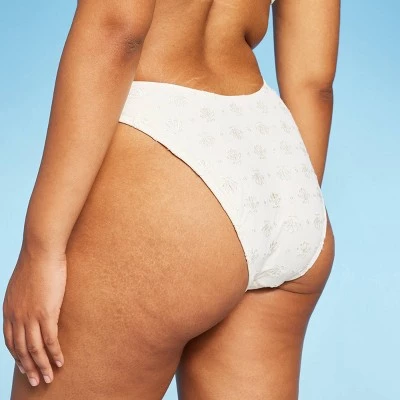 Extra-cheeky pointelle bikini bottom from Wild Fable™. Made from soft fabric with four-way stretch and full lining for flexible comfort in and out of the water. Designed with low rise and a flattering V-front plus a sweet bow detail. Ultra-high leg cut with elastic at leg openings finishes off the chic look.