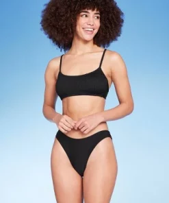 Update your swimwear for beach trips or the pool with this Ribbed High-Waist Cheeky Bikini Bottom from Shade & Shore™. This cheeky bikini bottom in a solid color features a flattering high-waist, high-leg silhouette and a ribbed construction for a chic touch of texture. The stretchy fabric provides easy movement, and the opaque construction offers full coverage for confident wear. Pair with a matching bikini top or with other bikini tops for endless styling options.
