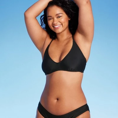Scoop-front bralette bikini top from Wild Fable™. Made from soft fabric with spandex for stretchy comfort in and out of the water. Removable cups provide customizable coverage. Adjustable straps plus behind-neck tie and back hook offer the perfect stay-put fit.