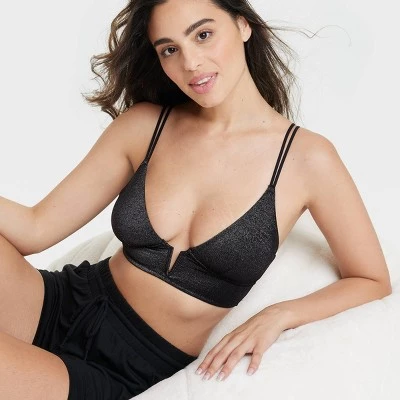 This Shimmer Bralette from Auden™ features a split V-neck and a crisscross back for breezy style. Made from shimmery knit fabric with added stretch, it offers a flexible fit for comfortable all-day wear. The adjustable dual straps help you find a fit that’s just right for you, while the wireless construction and unlined cups round out the design with support that maintains a natural shape.