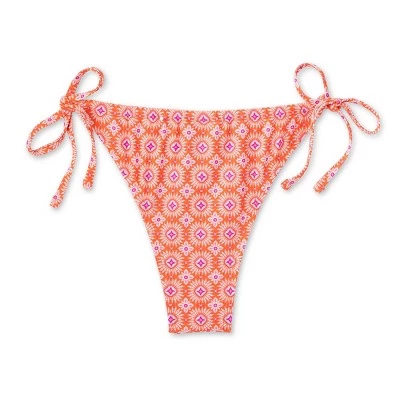 Orange bikini bottom from Wild Fable™ adorned with a tile print. Made from soft, stretchy fabric with elastic at the leg openings. Ultra-high-leg silhouette with a low-rise cut. Side string ties and adjustable cheeky coverage complete the look.