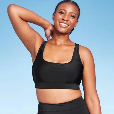 Put together a simple, beautiful look for the beach or pool with this Underwire Square Neck Bikini Top from Kona Sol™. This solid-color bikini top features a square neckline and a sleeveless design for an elegant look. Made from soft and stretchy fabric with full lining, it offers comfortable, flexible movement in and out of the water. The back hooks and adjustable straps help you find the perfect fit, and the underwire construction provides the right support. Simply pair it with your favorite bikini bottom, sandals and a sun hat to finish off the look.