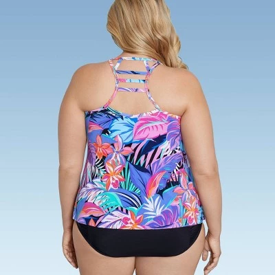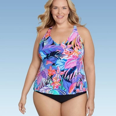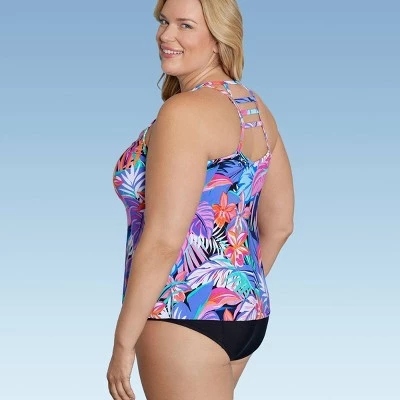 Get beach or pool ready by wearing the UPF 50 V-Neck Tankini Top from Aqua Green®. This racerback tankini top features a printed pattern with V-neckline and broad straps to complete the look. Made with soft and stretchy fabric, this printed tankini top offers flexibility and comfort. It is designed with a built-in-shelf bra and removable cups to help provide customized coverage. Plus, with the UPF 50+ rated design, you’ll stay shielded from harmful sun rays.